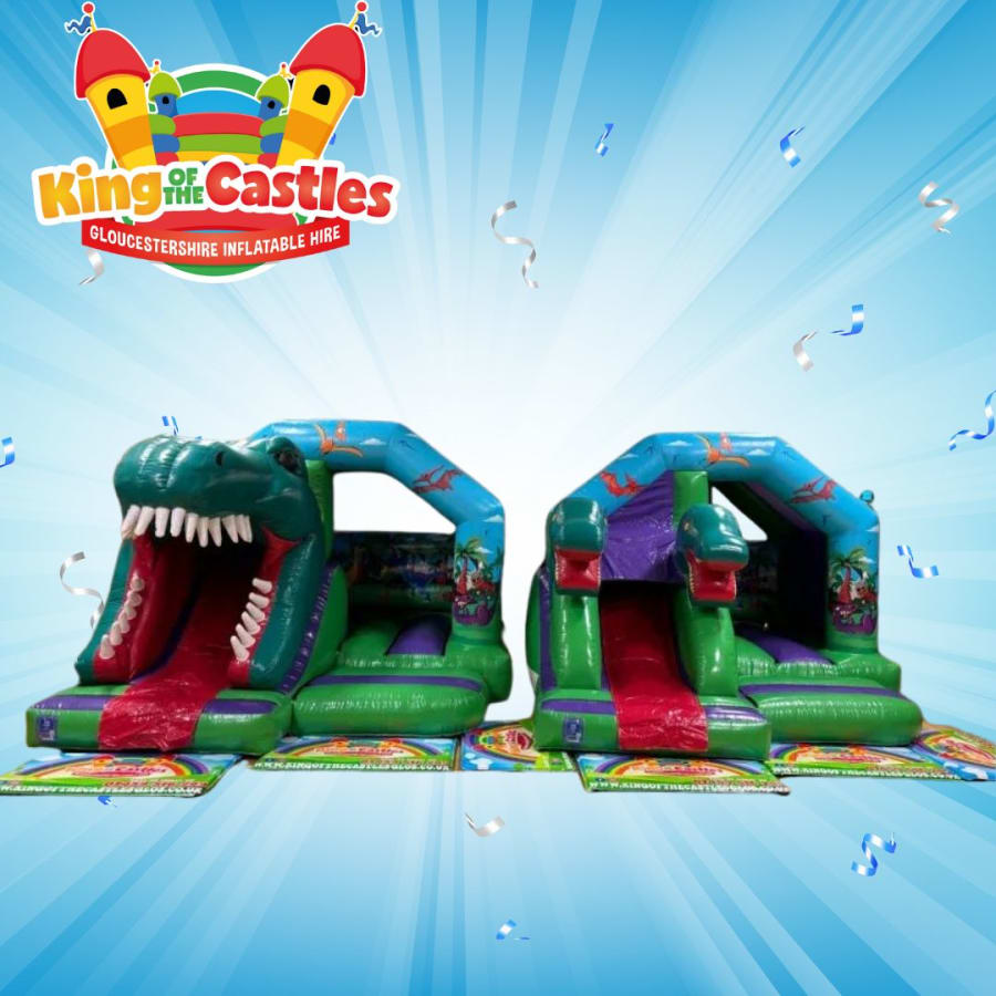 Experience the thrills of the Jurassic era with our dinosaur bouncy castle package! This is marks our Epoch as the Kings of Gloucestershire bouncy castle hire, and brings prehistoric excitement to your next event.