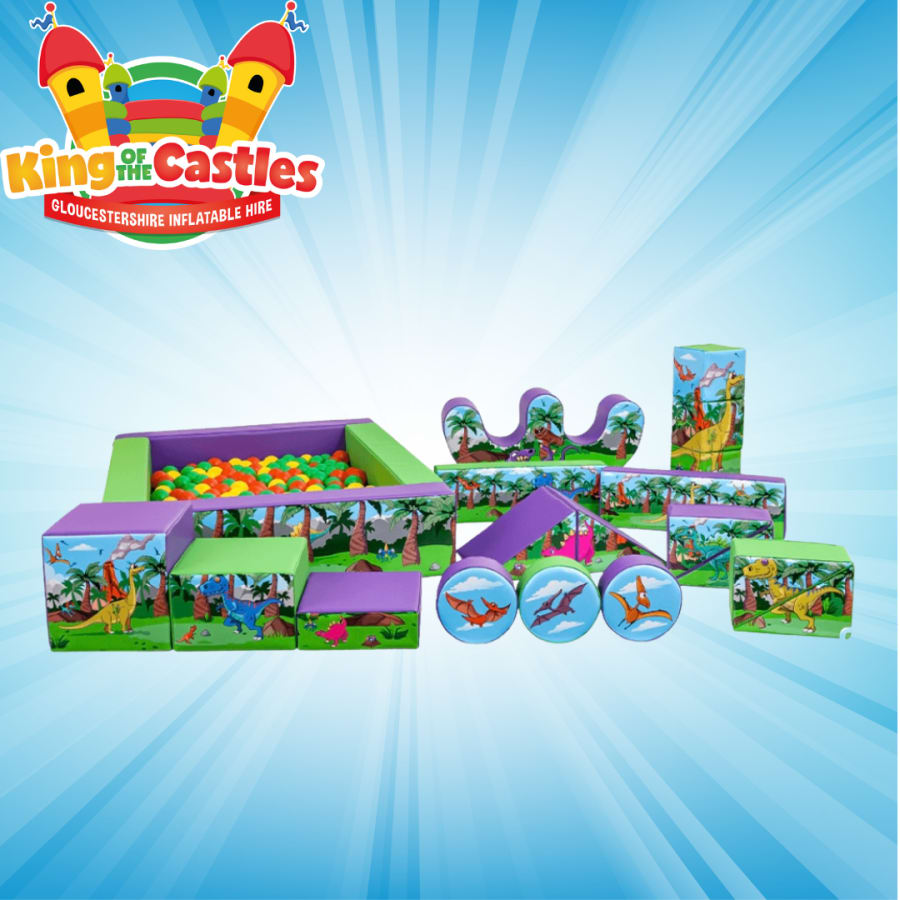 This dinosaur-themed soft play set is aimed at toddlers and pre-school ages who enjoy exploring at their own pace. The mix of soft shapes and a matching ball pool allows children to crawl, climb and play safely, making it a popular option for birthdays and family-focused gatherings.