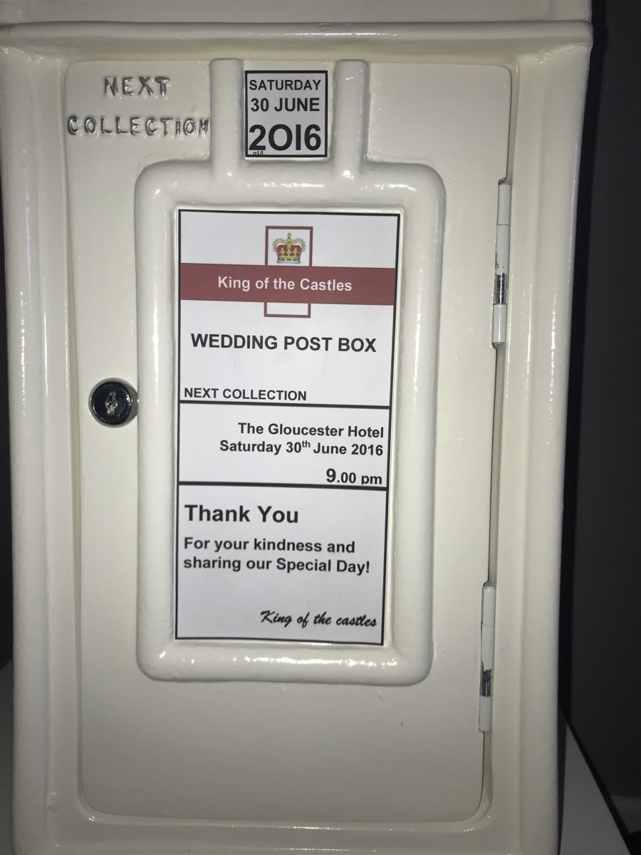 As memories build on the biggest day of your life, ensure your guests' well wishes are treasured in style, whether in Gloucester, Cheltenham, Tewkesbury, Stroud, or any corner of Gloucestershire. Introducing, from the esteemed inventory of King of the Castles Glos, the refined Royal Mail replica Wedding Post Box - the ideal wedding hire option for storing your cards and gifts.