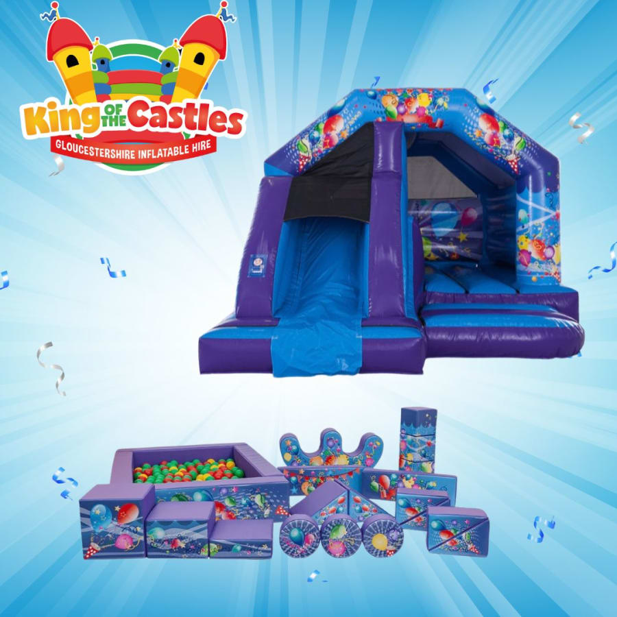 The Front Slide Package combines fun and value into one party package, blending the Blue Party theme Soft Play and Ball Pool with the exhilarating Party Time Bounce and Slide Bouncy Castle. Designed for those who want to offer a variety of entertainment at their event without the hassle of multiple bookings, this package is a seamless way to ensure your gathering in Gloucestershire is full of bouncy fun at an affordable price.