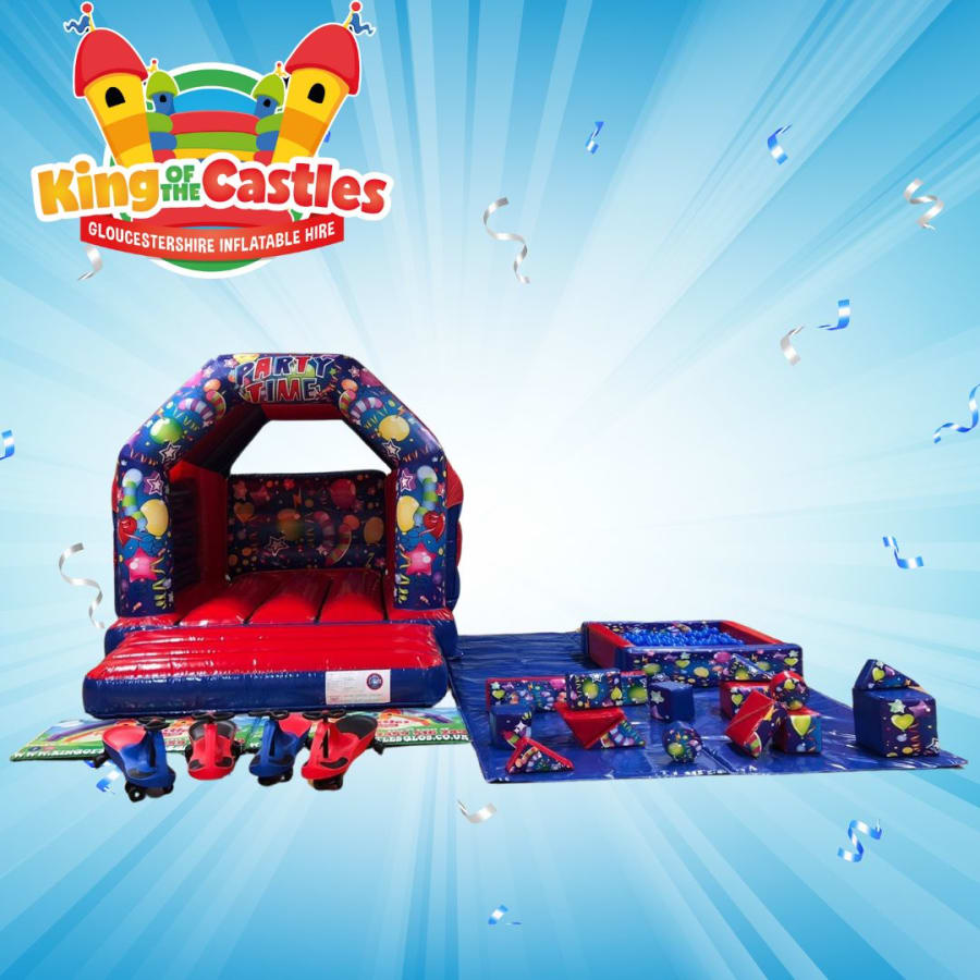 All the inflatables for hire as part of this package have full party time themes. When you book this out, you'll receive: